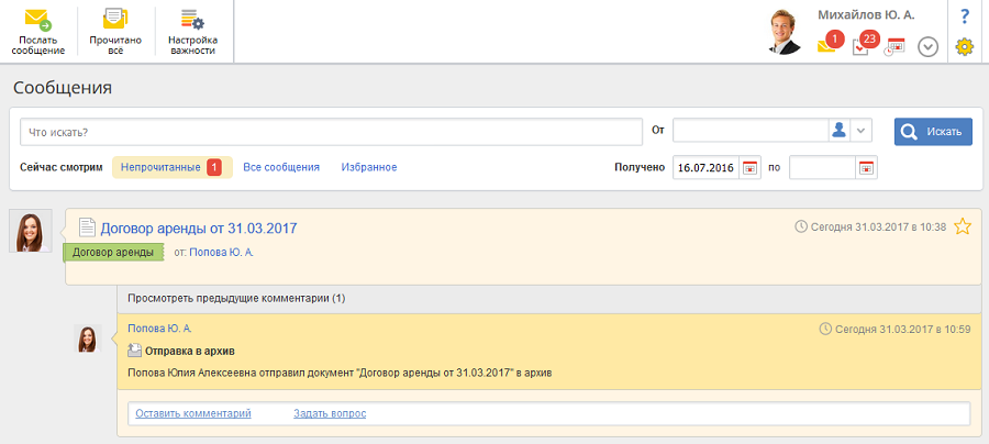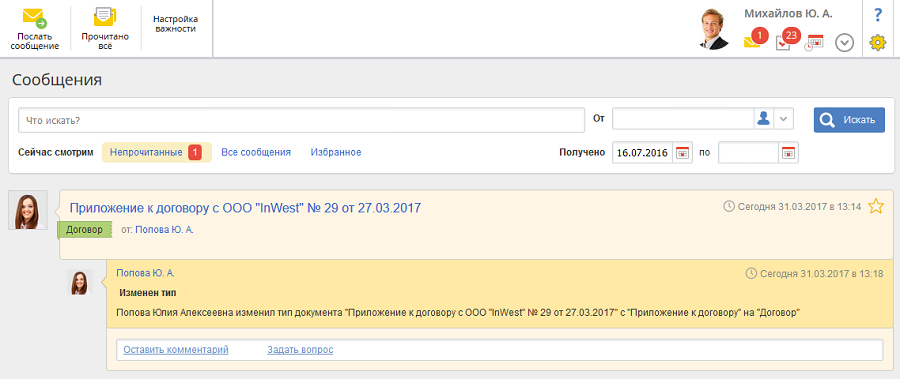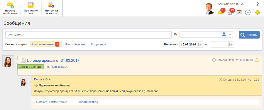При подписке на документ пользователь начинает получать в ленту сообщений уведомления о ряде действий, осуществляемых с документом (рис. 3-6):