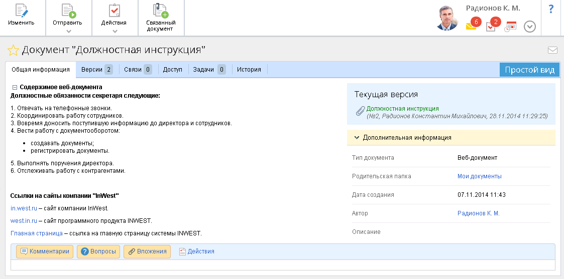 При нажатии на кнопку Простой вид будет осуществлен переход к простой карточке веб-документа (рис. 2).