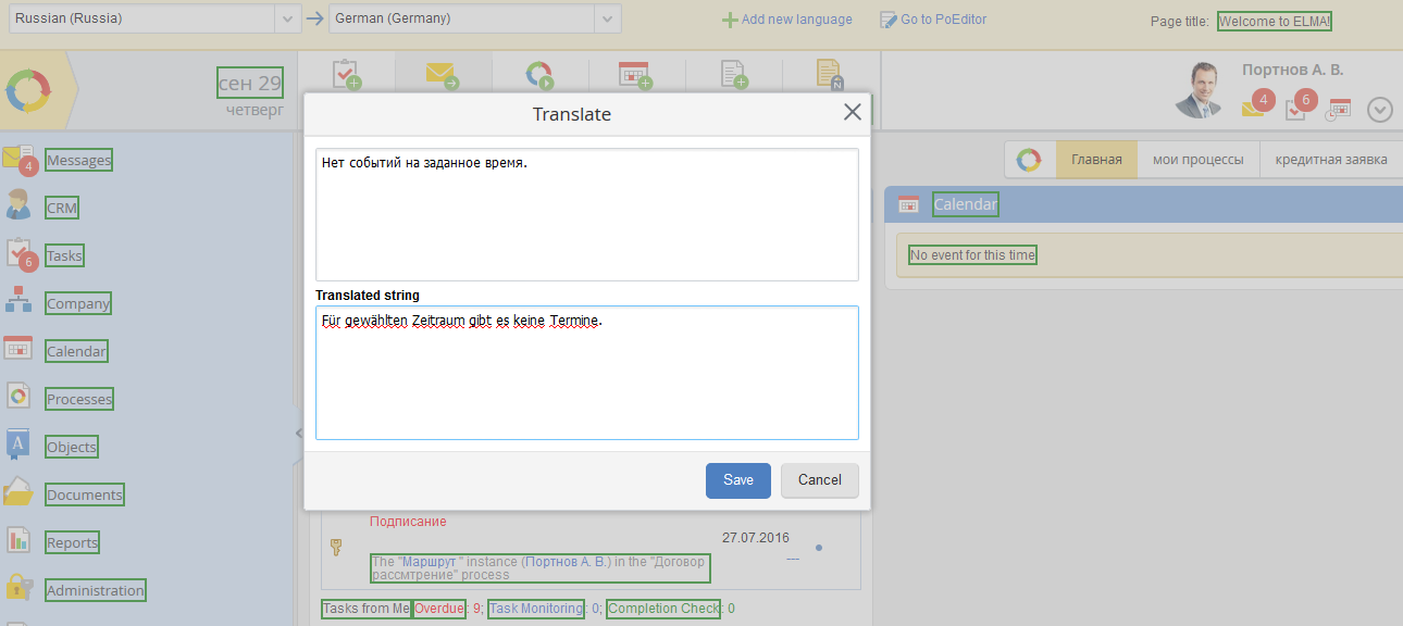 Перевод лексических единиц системы ELMA через раздел "PoEditor"