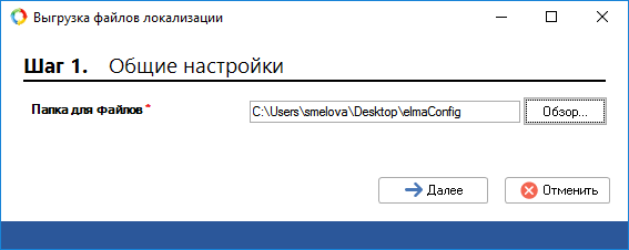 На данном шаге необходимо выбрать папку, в которую будут сохранены файлы для перевода конфигурации. Для каждого последующего шага будет сформирован отдельный файл перевода с расширением .po.