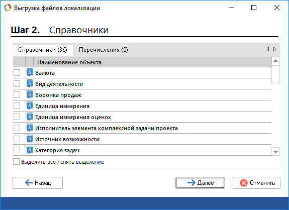 Рис. 2. Выгрузка файлов для перевода конфигурации. Шаг 1