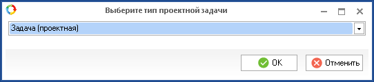 Кнопка Добавить формы для задач позволяет предопределить формы создания, редактирования и просмотра, которые будут использоваться во время работы с проектными задачами данного типа. При нажатии на данную кнопку будет открыто диалоговое окно выбора типа проектной задачи (рис. 9), в котором необходимо выбрать требуемый тип задачи и нажать на кнопку ОК.
