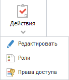 При нажатии на кнопку Действия и/или пиктограмму открывается выпадающее меню, которое предлагает: