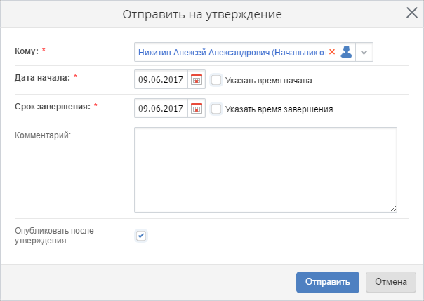 Рис. 3. Диалоговое окно "Отправить на утверждение"