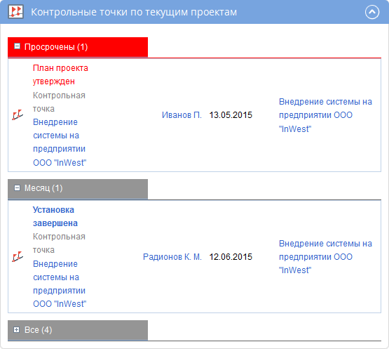 Рис. 1. Портлет "Контрольные точки по текущим проектам"