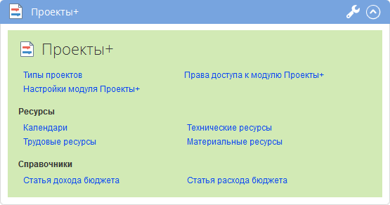 раздел Ресурсы – позволяет создавать и редактировать календари ресурсов проектов, а также трудовые, технические и/или материальные ресурсы проектов ;