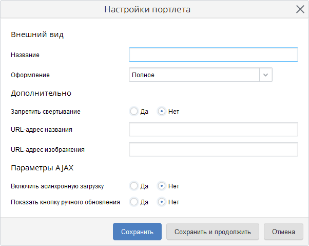 Выполнив все необходимые настройки портлета, необходимо нажать на одну из кнопок: