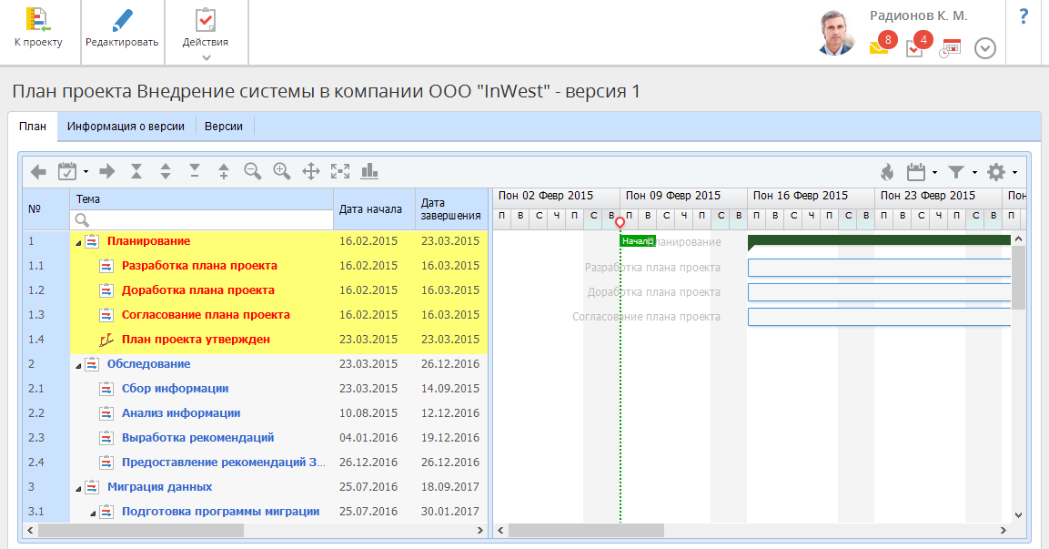 Рис. 1. Страница плана проекта. Кнопка "перейти к редактированию плана"