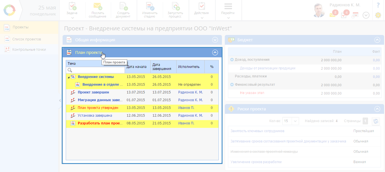 нажать на название портлета План проекта(рис. 2), расположенного на странице проекта.
