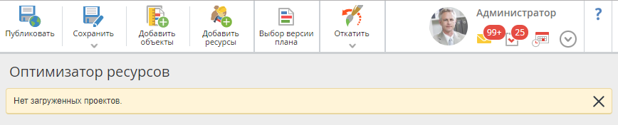При нажатии на пиктограмму  и кнопку Сохранить все измененные планы сохраняются все планы проектов, версии которых были изменены в оптимизаторе ресурсов.