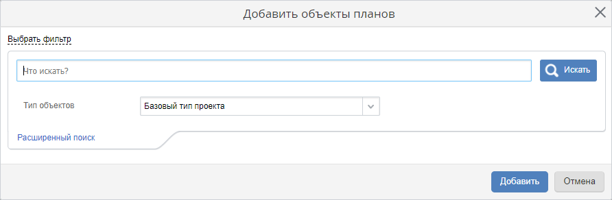 Форма поиска объектов планов