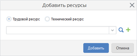 ресурсы (трудовые/технические), которые будут добавлены в оптимизатор ресурсов. При наличии кнопки