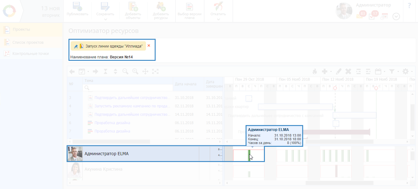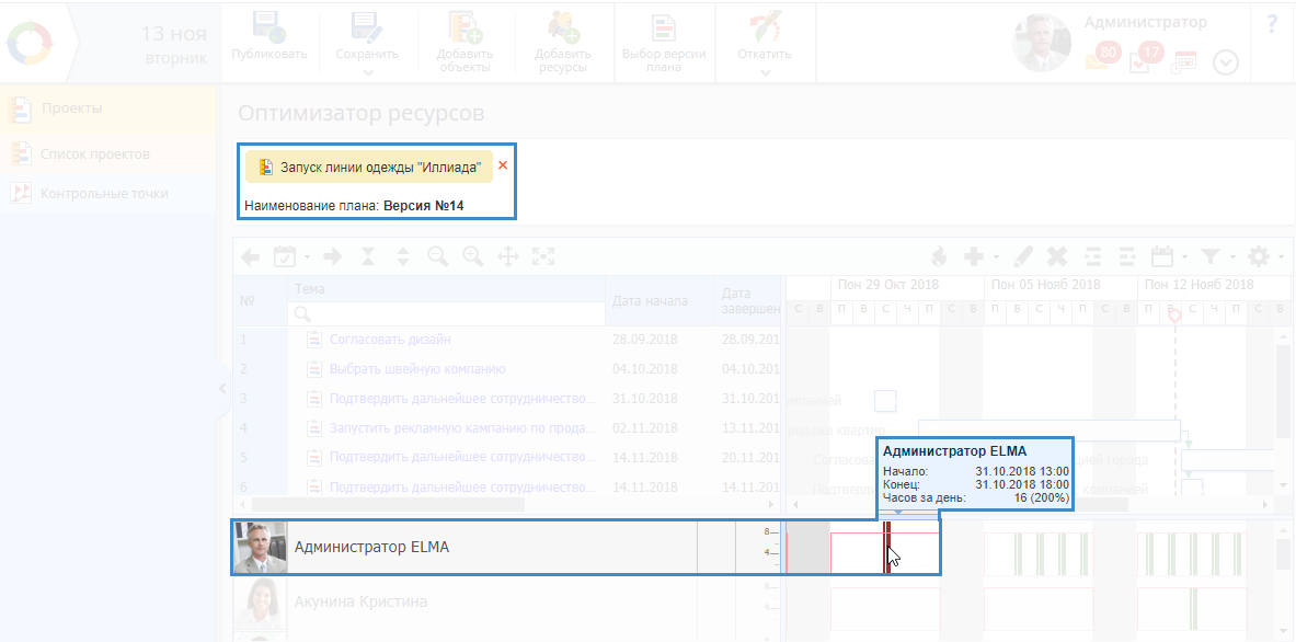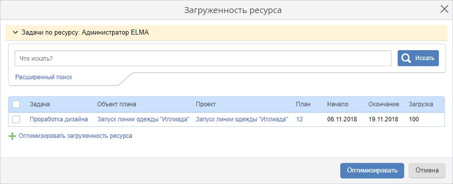 Оптимизатор ресурсов – это инструмент, предназначенный для планирования и оптимизации загруженности трудовых и технических ресурсов.