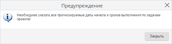 В случае, если в таблице не будут указаны прогнозные сроки выполнения задач, после нажатия на кнопку Сделано задача не будет закрыта. Будет отображено соответствующее уведомление (рис. 2).
