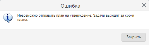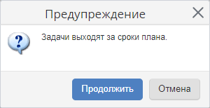 Работа с данным планом будет невозможна, пока сроки задач не будут изменены. В противном случае, отобразятся следующие уведомления: